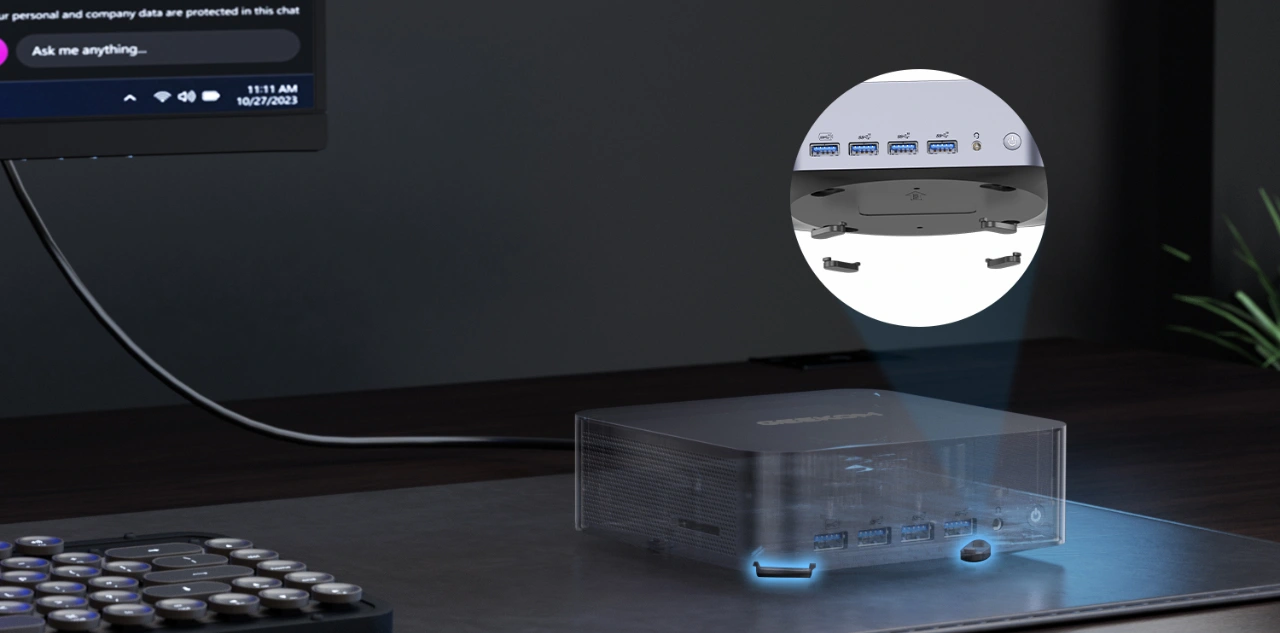 - Diseño ultracompacto y elegante – Solo 0,47 L de volumen, carcasa de aluminio y soporte VESA para integrarse en cualquier espacio.