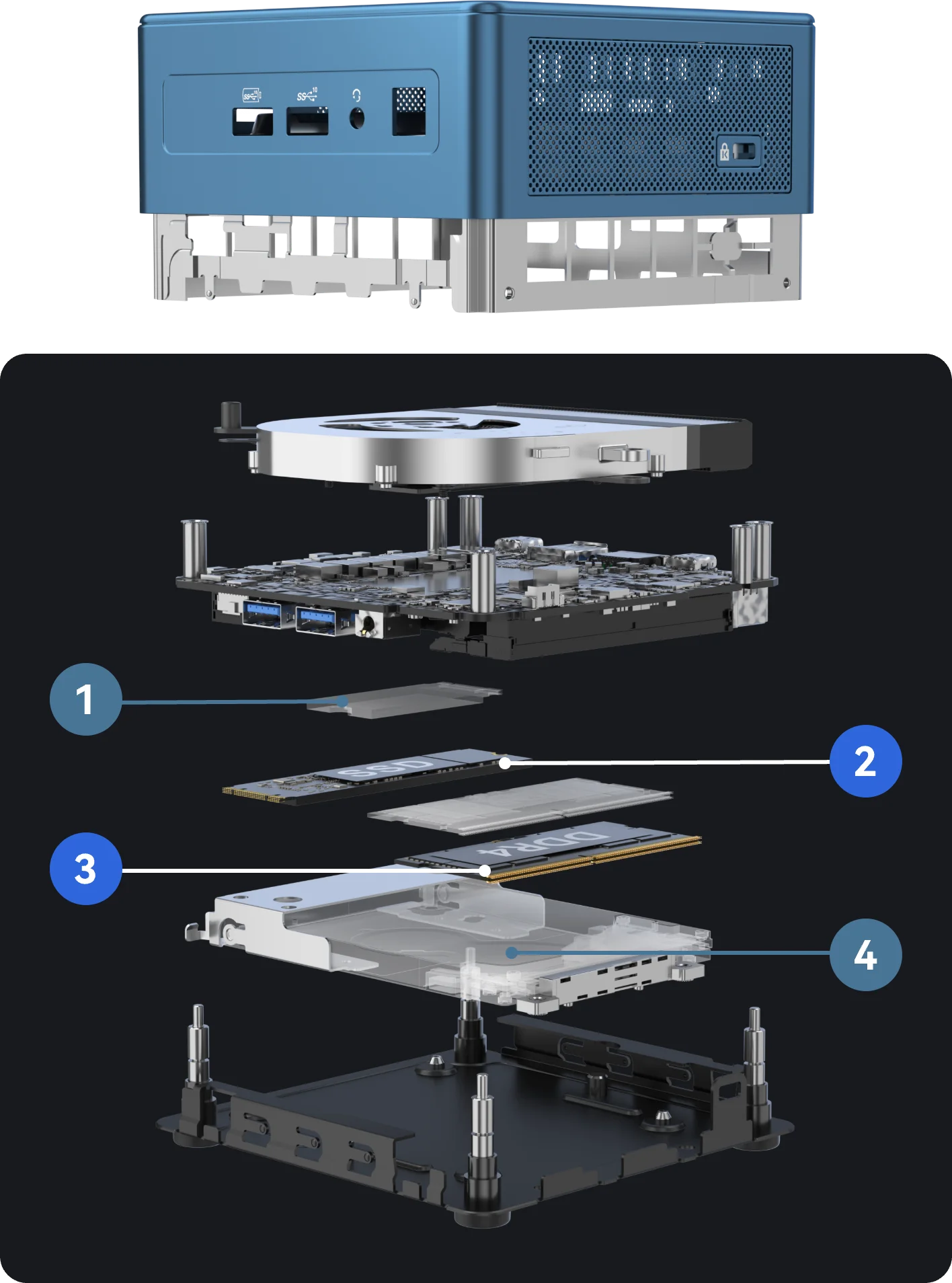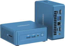 El GEEKOM IT13 Edición 2025 combina potencia y elegancia en un formato ultra-compacto, lo bastante pequeño para sostenerlo con una mano. Su chasis metálico de alta calidad ofrece un acabado elegante, duradero y de gama alta. El acabado azul mate añade un toque sofisticado, lo que lo convierte en un Mini PC potente y elegante en cualquier espacio de trabajo. ¡Pequeño en tamaño, grande en potencia!